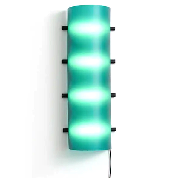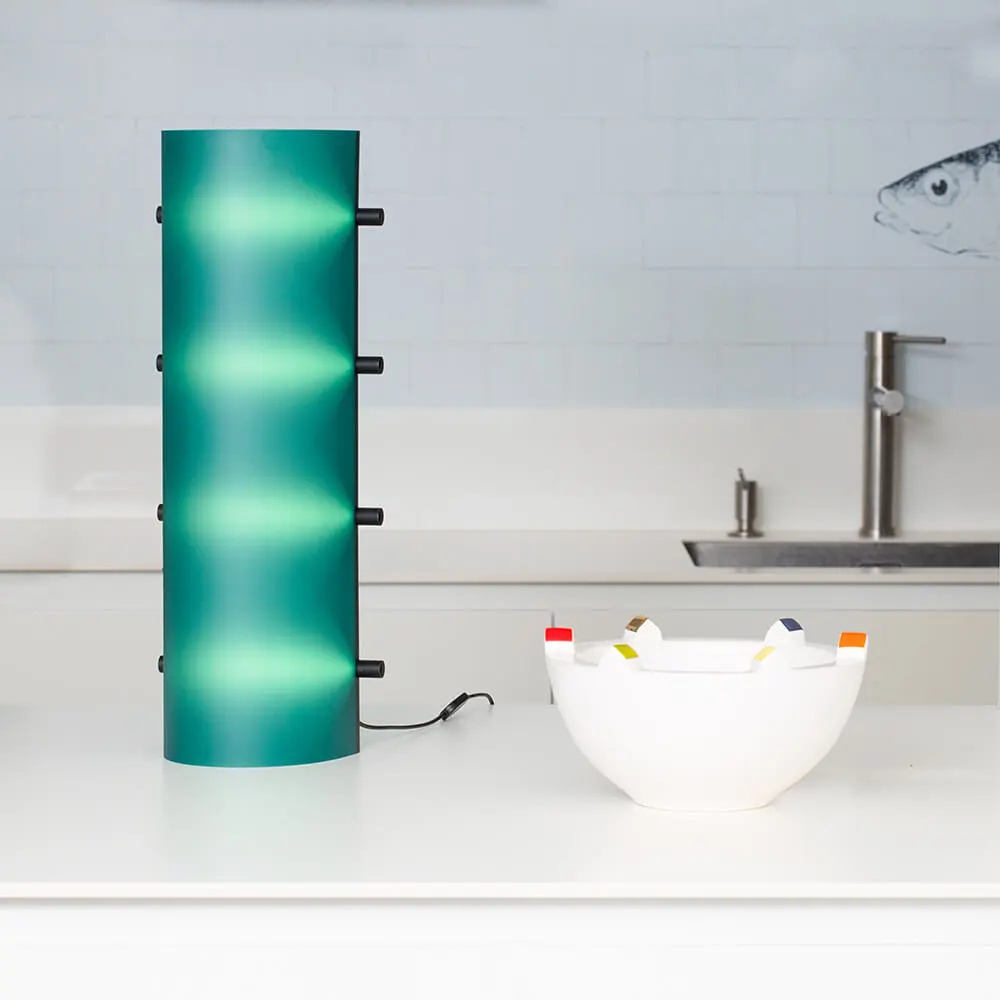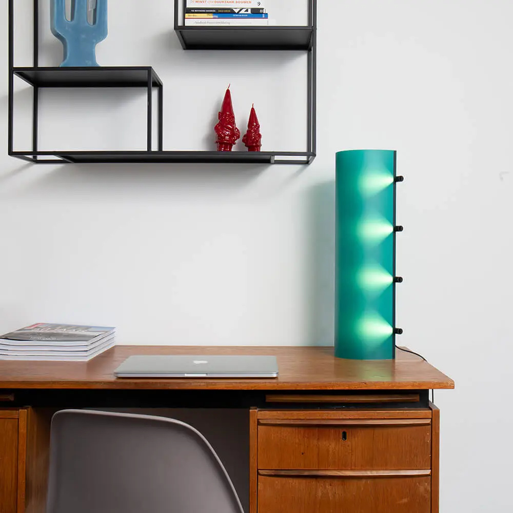 De tafel- wandlamp Leaf Dark Green is een opvallende lamp voor de design liefhebber. Wanneer de lamp aan staat zie je mooie horizontale lijnen van het ingebouwde LED achter de kap. Wanneer de lamp aan de wand hangt zie je een mooi lichtspel aan lijnen over de muur gaan doordat de lamp iets van de muur afkomt. Het is een prachtige lamp met een bijzondere design touch voor in je interieur. De lamp is gemaakt van een polypropyleen kap van 0,8 cm dik en aluminium buisjes. De lamp is tijdloos zodat het trends doorstaat en je er langer van kunt genieten. Ook de verpakking komt uit Brabant en is net zoals de lampenkap te recycleren. Er is gebruik gemaakt van LED licht dat zo wie zo duurzaam is. Aan het zwarte snoer zit een handige dimmer. De lamp wordt zeer compact (plat) aangeleverd om zo de ‘footprint’ zo klein mogelijk te houden bij het verzenden. De kunststof ‘kap’ heeft aan beide kanten geleiders. Door de gekleurde kap in de 4 losse buisjes te klikken ontstaat er een verbinding waardoor de elektriciteit kan doorstromen. Het is gemakkelijk in elkaar te zetten door de duidelijk instructies incl. foto's meegeleverd bij de lamp.