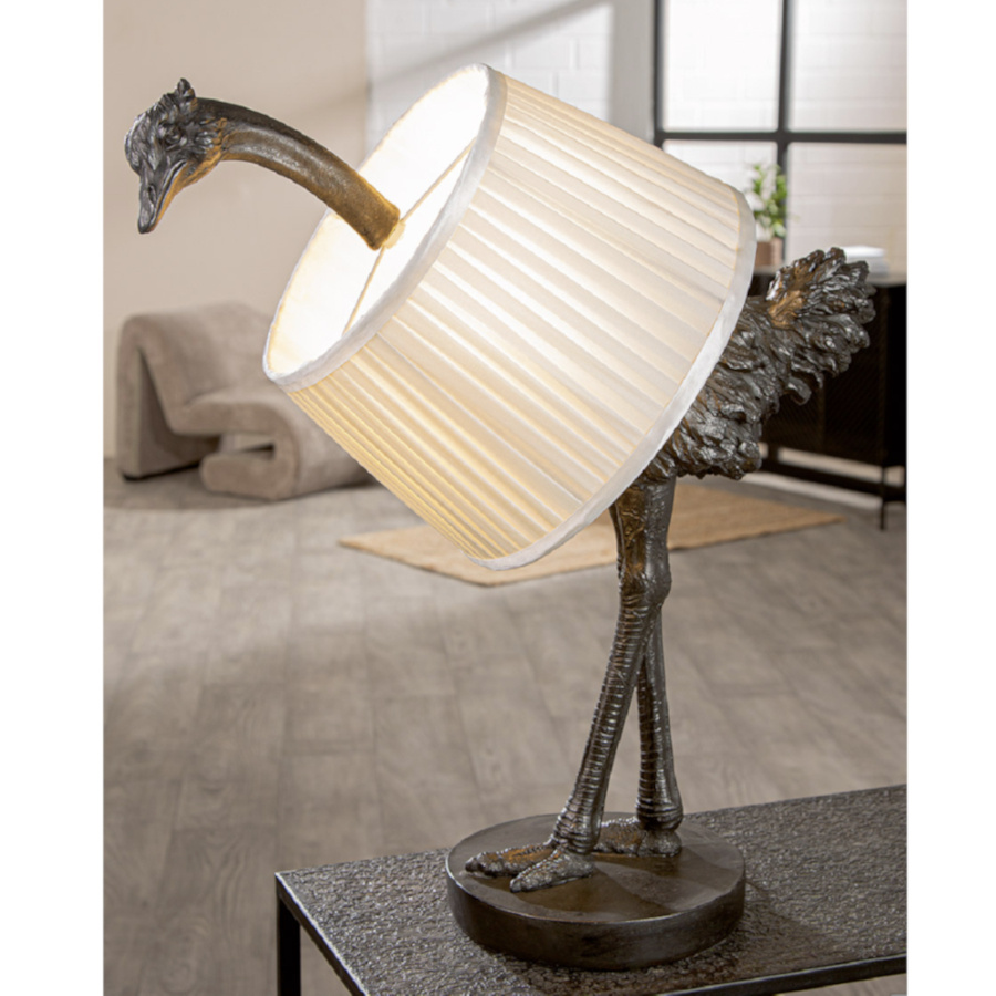 Houd je ervan om je huis op een ongebruikelijke manier in te richten? Deze struisvogellamp in het grijs is allesbehalve gewoon en pimpt gemakkelijk elke kamer op. Dit nieuwe favoriete artikel op dressoir of nachtkastje verspreidt overdag als sculpturale blikvanger en edele elegantie. Ondanks zijn trotse grootte van ca. 58 cm staat de stralende struisvogel te allen tijde stabiel.