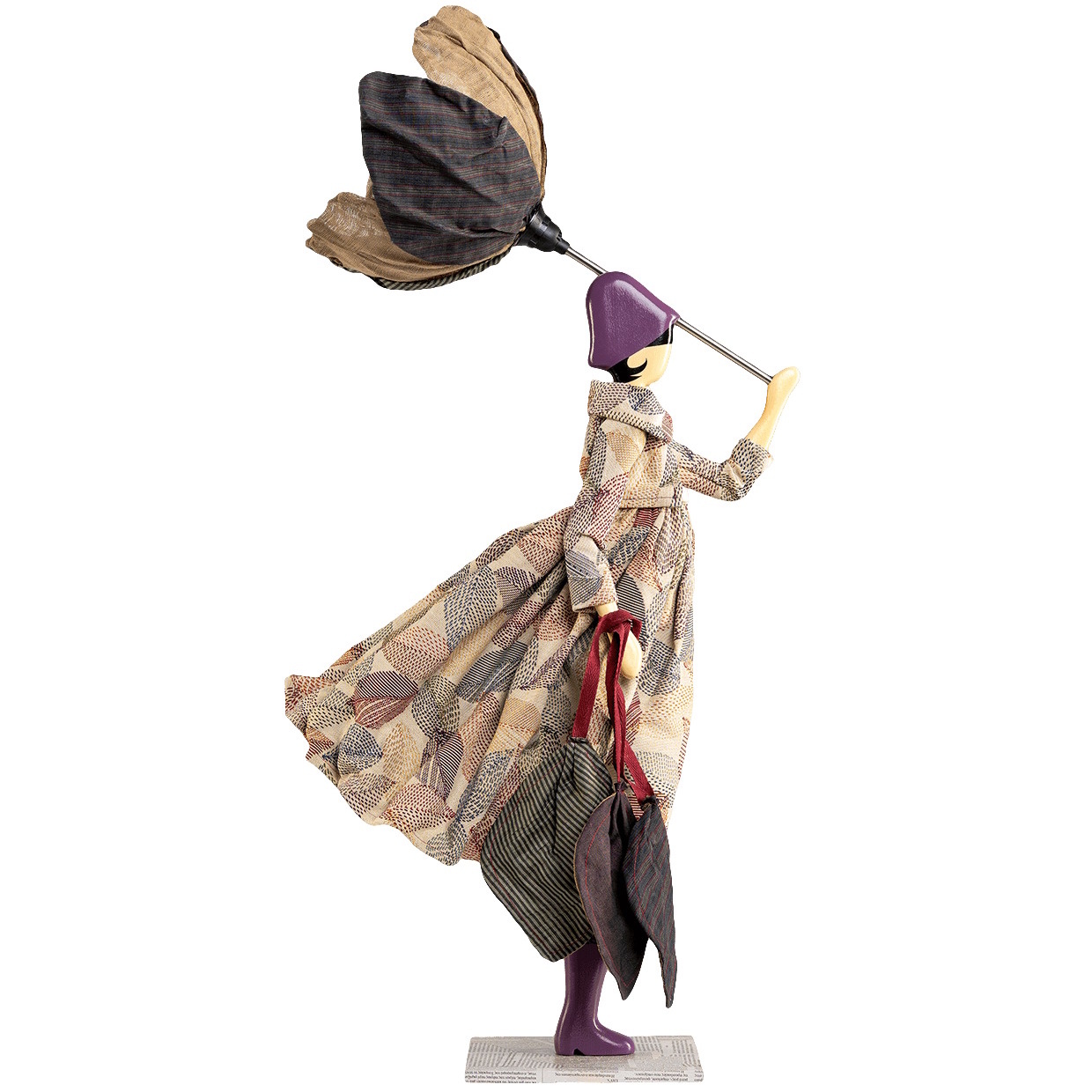 Handgemaakte tafellamp door het Griekse kunstenaarscollectief Skitso uit Thessaloniki. Deze lamp heeft de vorm van een charmante dame met in haar hand een paraplu in bloemvorm. Aan de omgeklapte paraplu en de naar achteren wapperende kleding zie je dat er een stevige wind staat. Maar naast charmant weet dit bloemenmeisje precies wat ze wil. Daarom trotseert ze zonder problemen de wind.