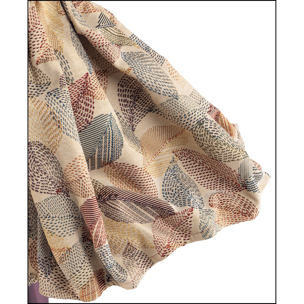 Voor de opgewaaide uitstraling zit er onderin de rok ijzerdraad verwerkt. De vierkante voet is van hout en beplakt met delen van Europese kranten. De lamp is voorzien van zwart elektriciteitssnoer met aan/uit schakelaar.