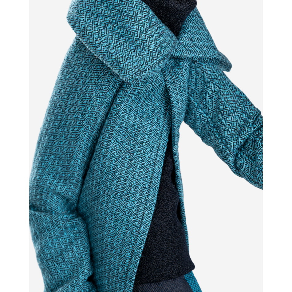 De paraplu dient als lampenkap en is gemaakt van nikkelkleurig metaal met opgestijfd kaasdoek. De basis van de man is gemaakt van beschilderd hout. Ian is stijlvol gekleed in een modern blauw maatpak. Zo draagt hij een driekwart jas met grote kraag voorzien van een fijn blauw patroon op een donkerblauwe ondergrond. Daaronder heeft hij een dunne zwarte coltrui op een donkerblauwe pantalon met grove blauwe ruit. Dit alles passend gecombineerd met zwarte schoenen, een zwart hoofddeksel en een zwarte paraplu of lampenkap. De vierkante voet is van hout en beplakt met delen van Europese kranten. De lamp is voorzien van zwart elektriciteitssnoer met aan/uit schakelaar.