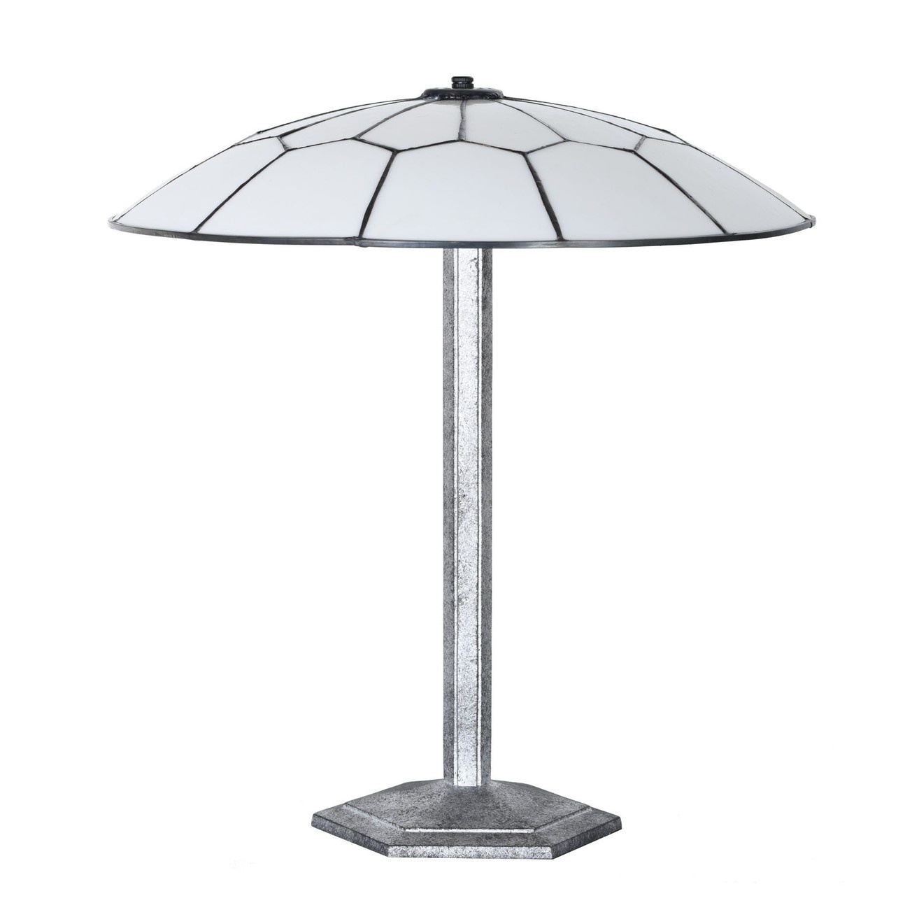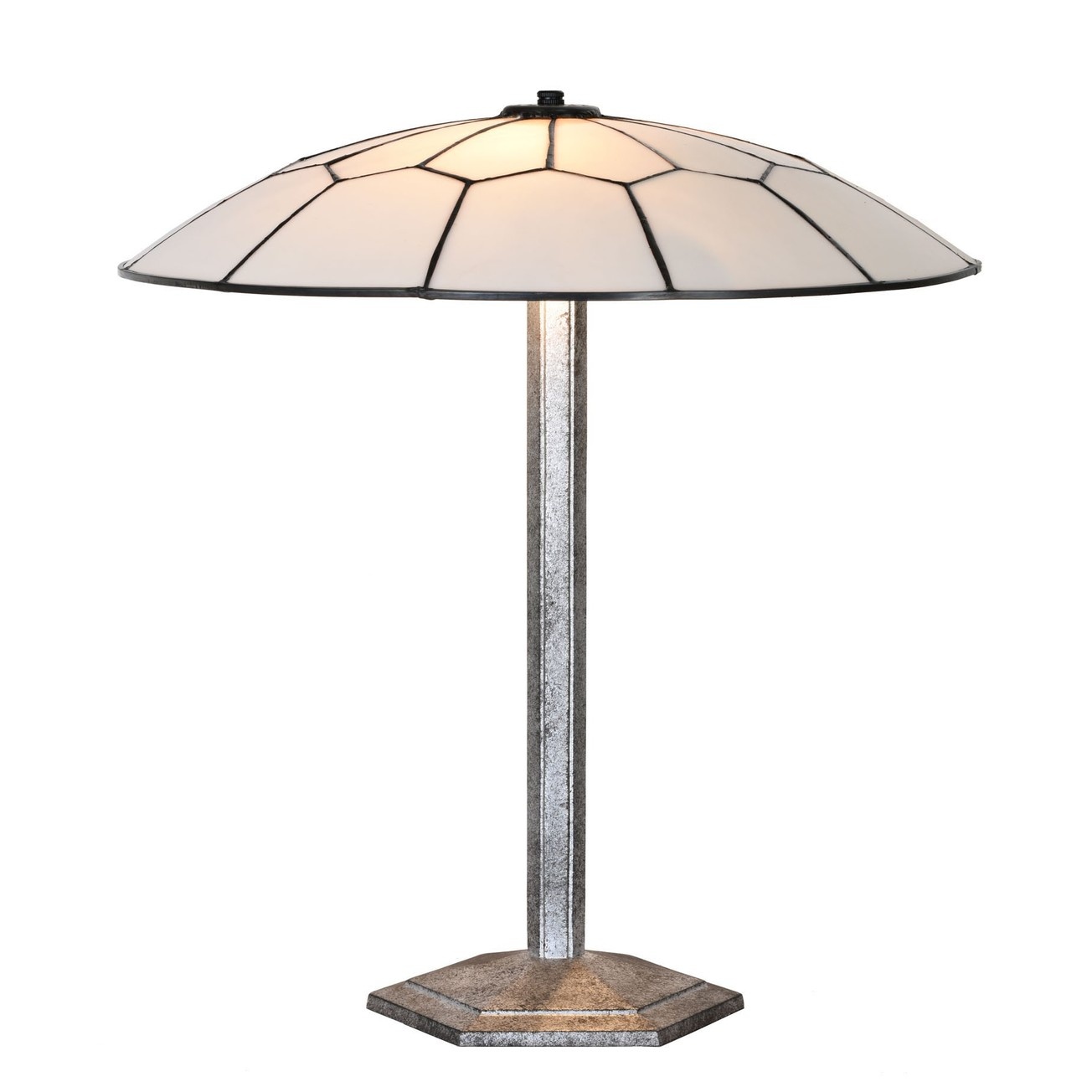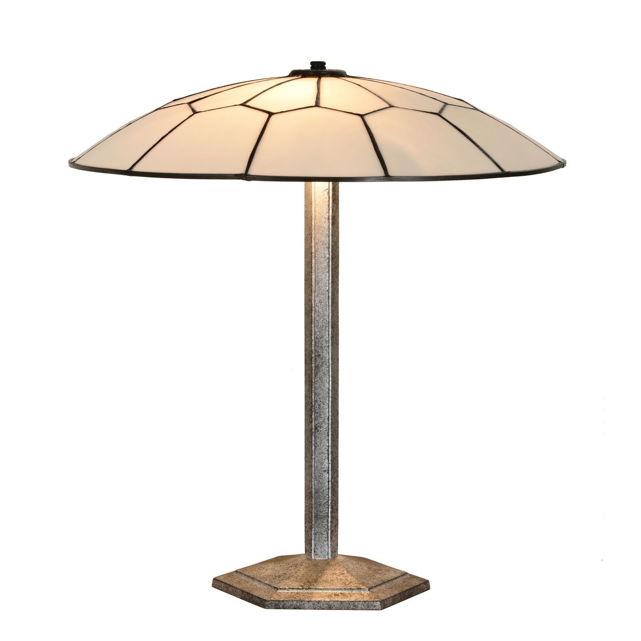 De schaal van deze glamoureuze Tiffany "Gatsby" tafellamp is gemaakt van paarlemoer glas. Een lust om naar te kijken! Chique, stijlvol en perfect voor decoratieve verlichting. Het metalen armatuur waarop de glaskap rust, mag ook gezien worden: Natuurlijk weer een beetje extravagant in een zeshoekige vorm. Mooi in een zilverzwart patin. Deze lamp maakt het Gatsby interieur compleet!