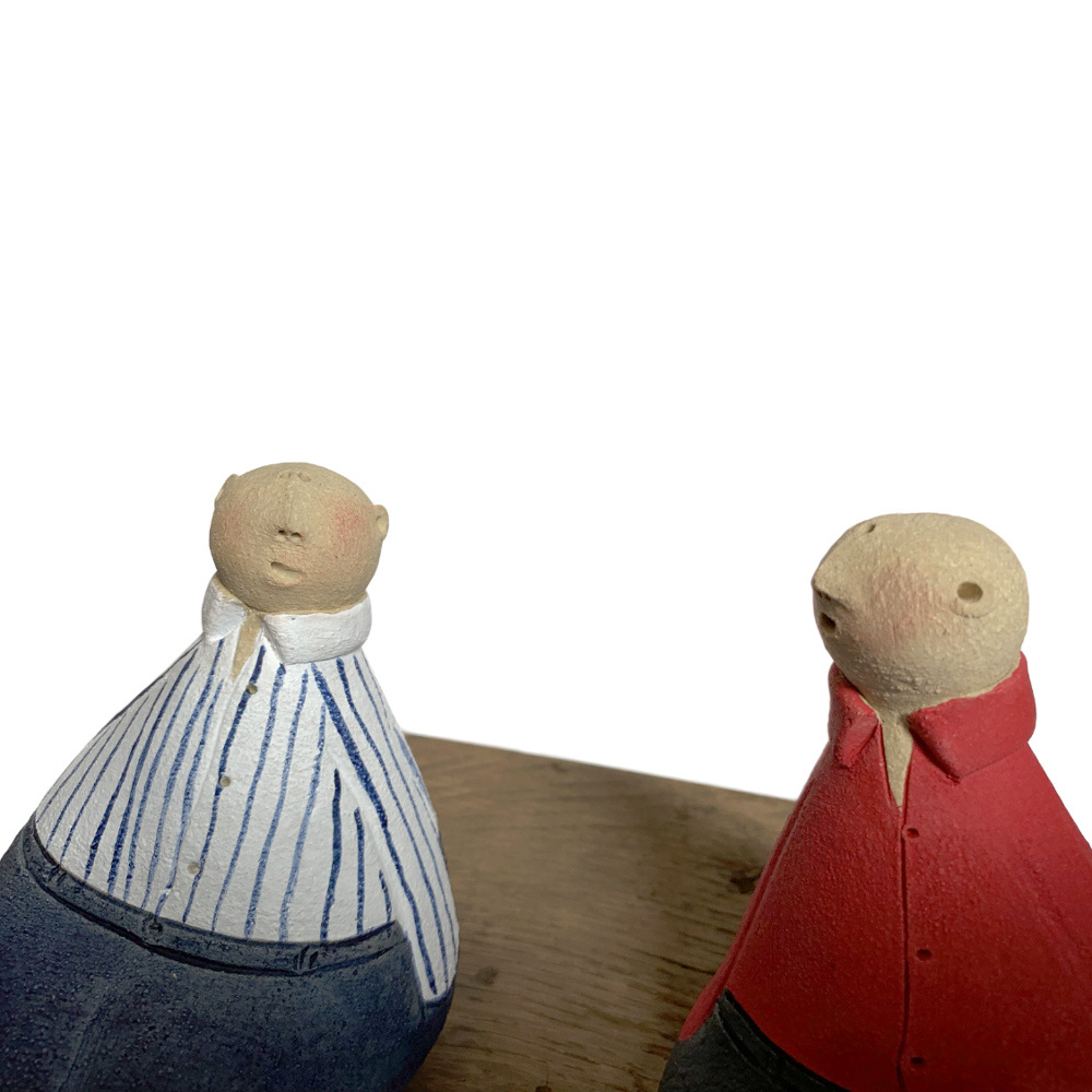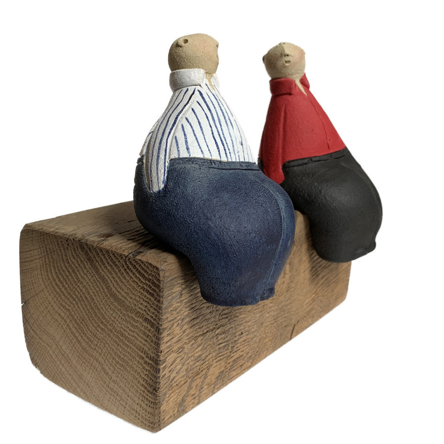 Dit beeld met de titel 'Communicatie-experts' spreekt voor zich. Twee vrienden die met elkaar in gesprek zijn. Ideaal als cadeau met symboliek.