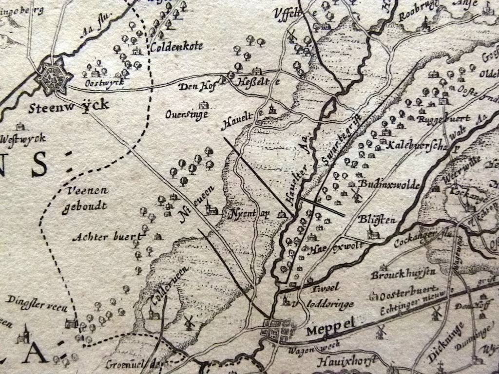 De kaart is in 1634 gekarteerd door Cornelis Pijnacker, cartograaf, hoogleraar en diplomaat. Vanaf 1629 woonde Pijnacker in Drenthe. Gedurende zijn verblijf in Drenthe heeft hij de eerste nauwkeurige kaart van het gebied gemaakt.