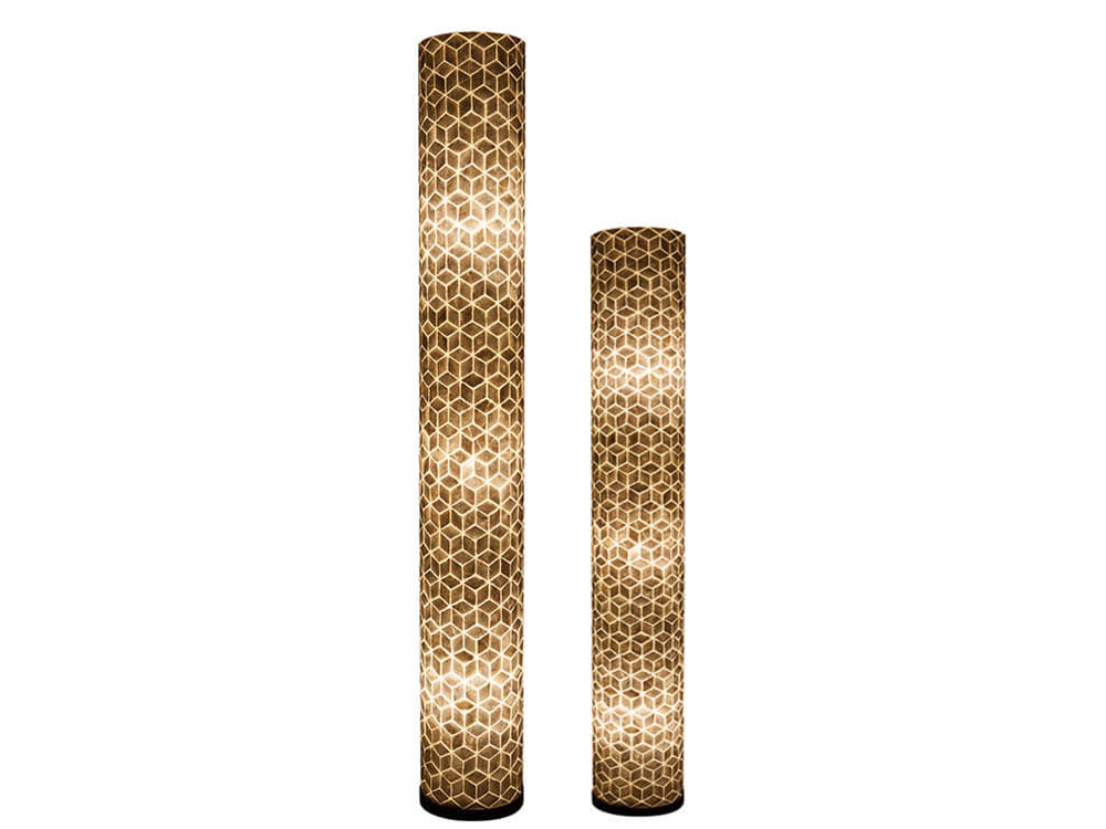 Staande, cilindervormige vloerlamp uit de serie Cubes. Hoogte 150 cm. ✅ Uw lange schelpenlamp(-en) veilig in huis dankzij onze Persoonlijke Bezorgservice* voor €45.