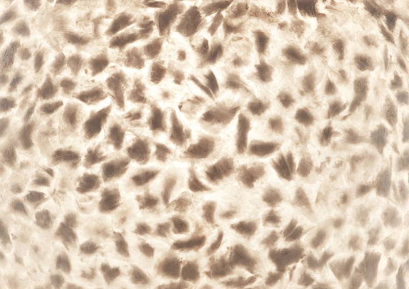 Alle lampen in de Wangi-serie hebben een fiberglas vorm als basis en zijn na het beplakken met parelmoer-fragmenten afgewerkt met een blanke lak.