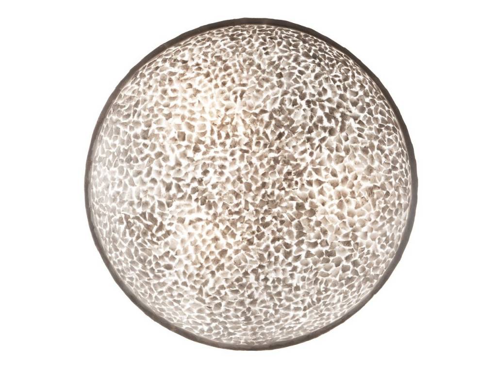Uitgeschakeld overheerst de zilverachtige weerschijn van de schelpfragmentjes.