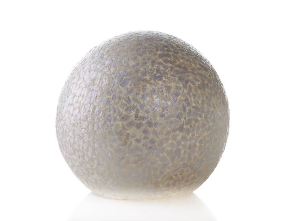 Alle lampen in de Wangi-serie hebben een fiberglas vorm als basis en zijn na het beplakken met parelmoer-fragmenten afgewerkt met een blanke lak.