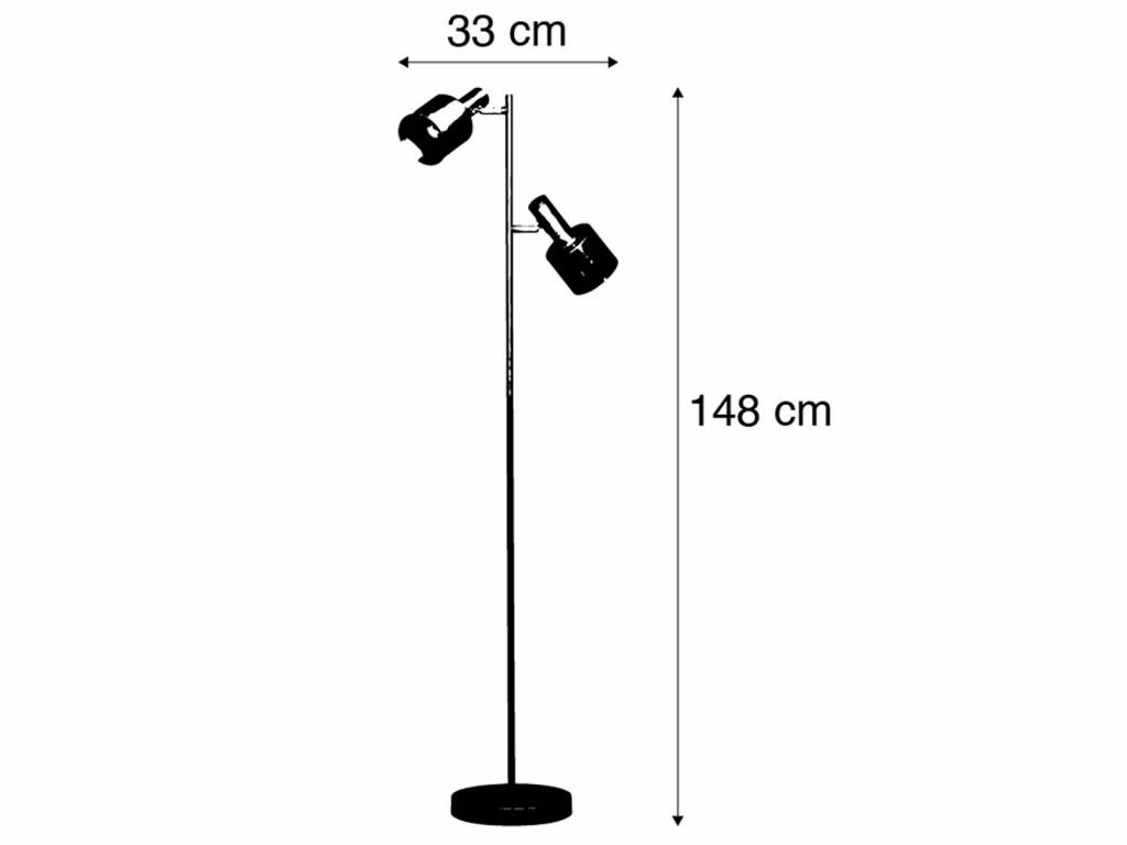 Vloerlamp in strakke vormgeving met 2 verstelbare kappen. De kappen kunnen zowel draaien als zwenken. Ze zijn voorzien van een grote fitting (E27), geschikt voor LED lampen. Ideaal voor het uitlichten van bepaalde elementen in uw interieur of als indirecte verlichting. Daarnaast functioneert hij ook prima als leeslamp. Gemaakt van staal met een mat groene poedercoating. De twee kappen hebben een witte binnenzijde. Voorzien van een aan/uit vloerschakelaar aan de zwarte elektriciteissnoer.
