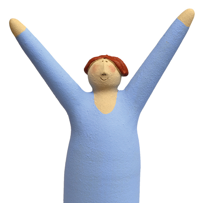 Serie beelden van de succesvolle Duitse keramiste Susanne Boerner met een groot gebaar van vreugde. Het voornaamste kenmerk, van haar met de hand gemodelleerde beelden, is de geestige en soms ook excentrieke uitstraling.