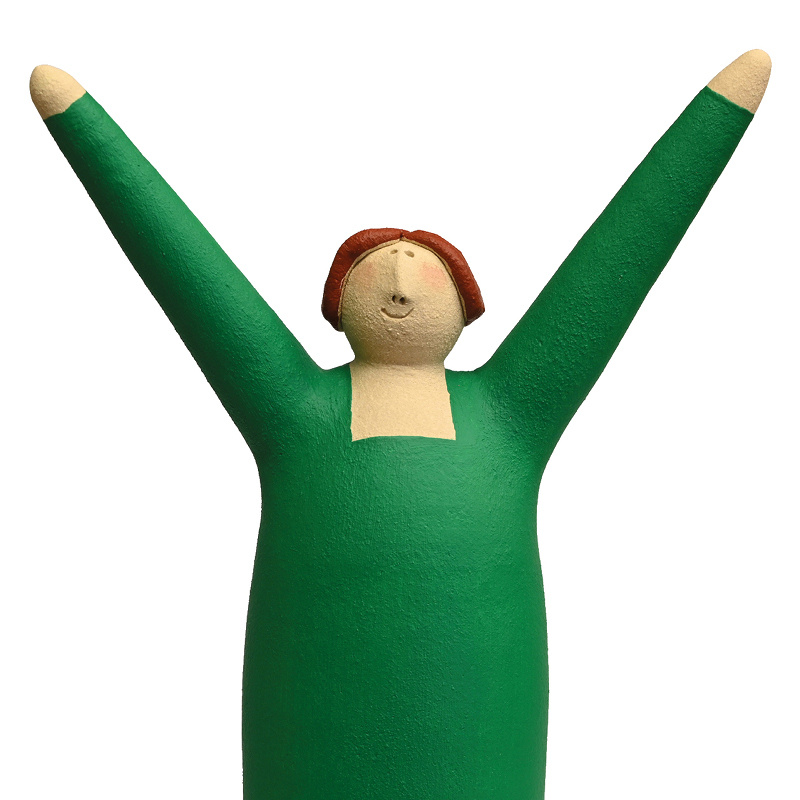 Serie beelden van de succesvolle Duitse keramiste Susanne Boerner met een groot gebaar van vreugde. Het voornaamste kenmerk, van haar met de hand gemodelleerde beelden, is de geestige en soms ook excentrieke uitstraling.