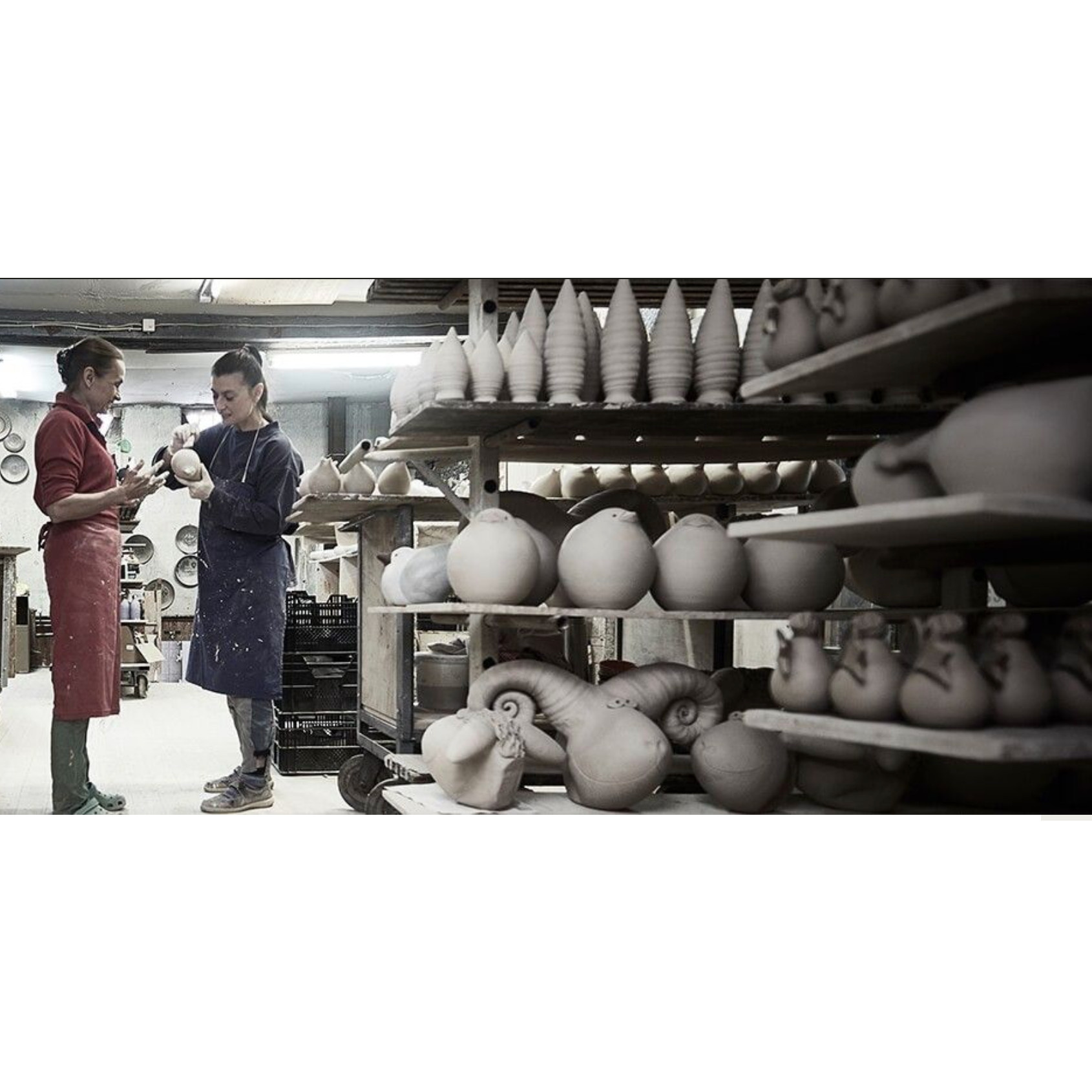"Ook al zijn we vrolijke meisjes, we zijn slechts oppervlakkig identiek. De focus van het werk ligt op het behoud van het individuele gebaar en karakter van elk figuur. Er ontstaat dus altijd iets nieuws aan de draaischijf, met zijn eigen charme, geïnspireerd door de overtuiging dat de bevestiging van het leven een kunst is en het leven zelf een kunstwerk."