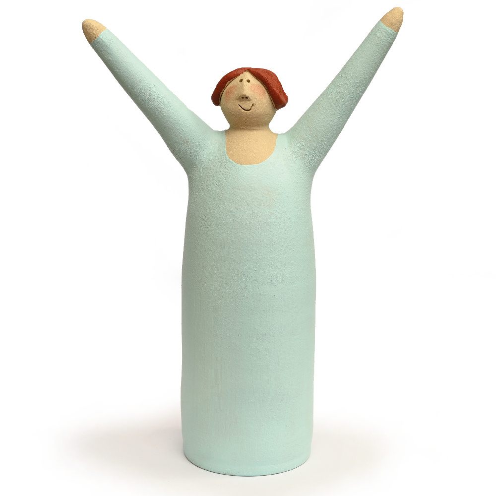 Serie beelden van de succesvolle Duitse keramiste Susanne Boerner met een groot gebaar van vreugde. Het voornaamste kenmerk, van haar met de hand gemodelleerde beelden, is de geestige en soms ook excentrieke uitstraling.