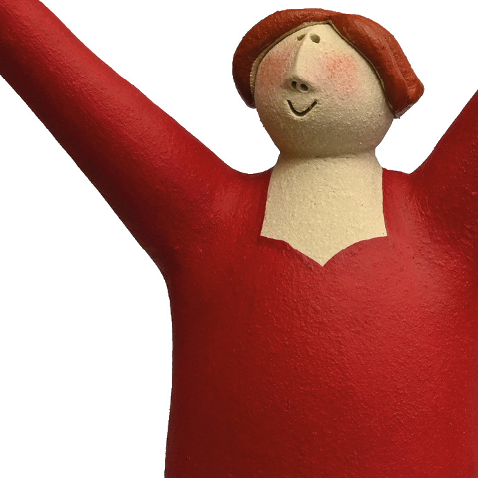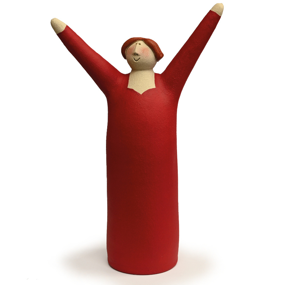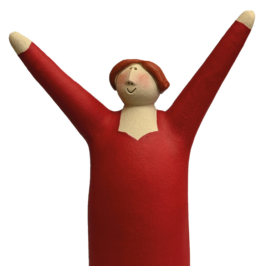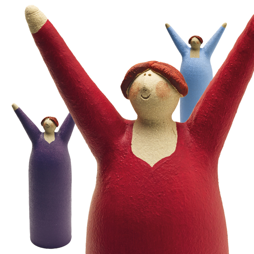 Serie beelden van de succesvolle Duitse keramiste Susanne Boerner met een groot gebaar van vreugde. Het voornaamste kenmerk, van haar met de hand gemodelleerde beelden, is de geestige en soms ook excentrieke uitstraling.