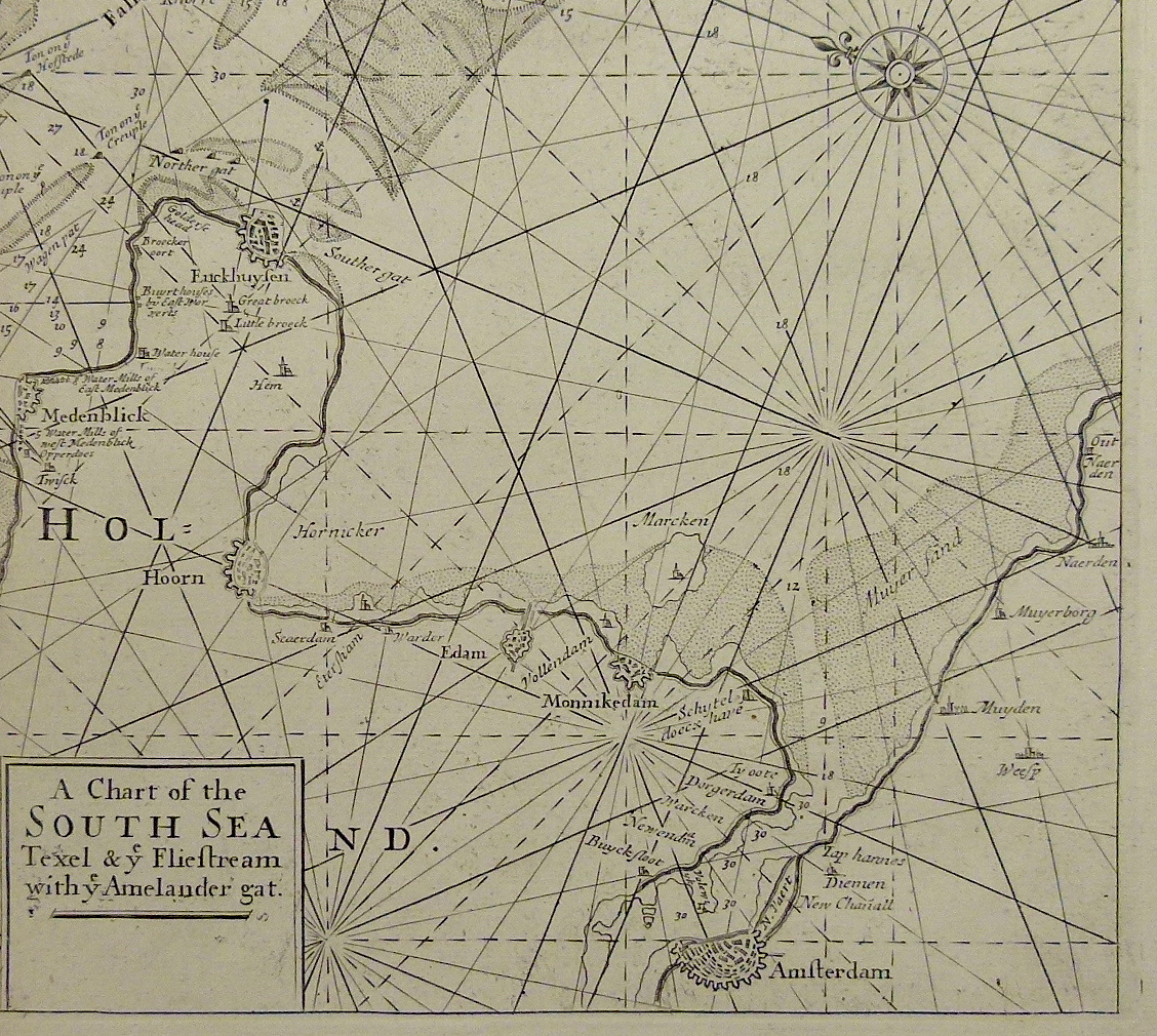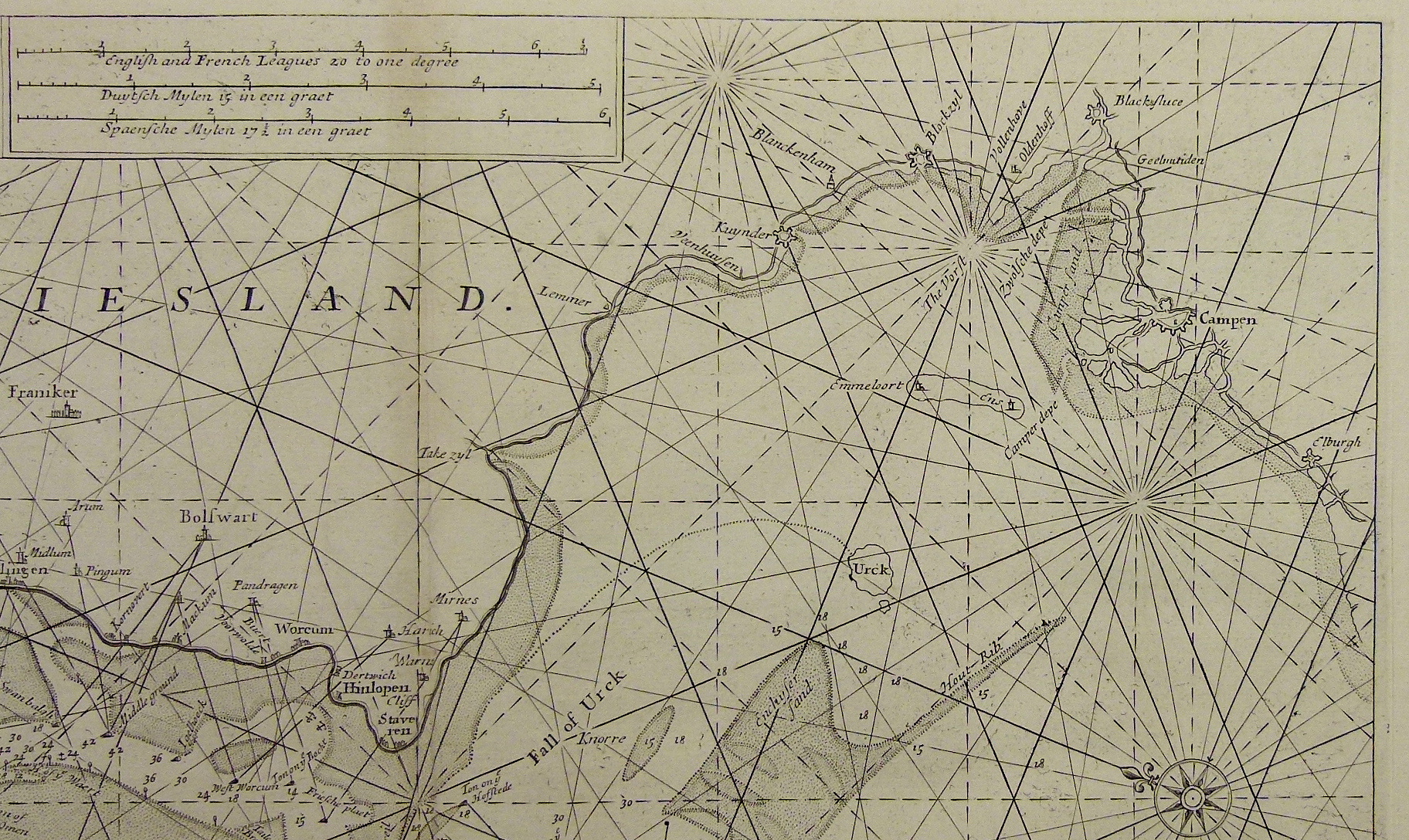 Kopergravure uit 'The English Pilot. Describing the Sea-Coasts, Capes, Head-Lands... Rivers and Ports in the Whole Northern Navigation.' uitgegeven door Mount en Page te London in 1756.