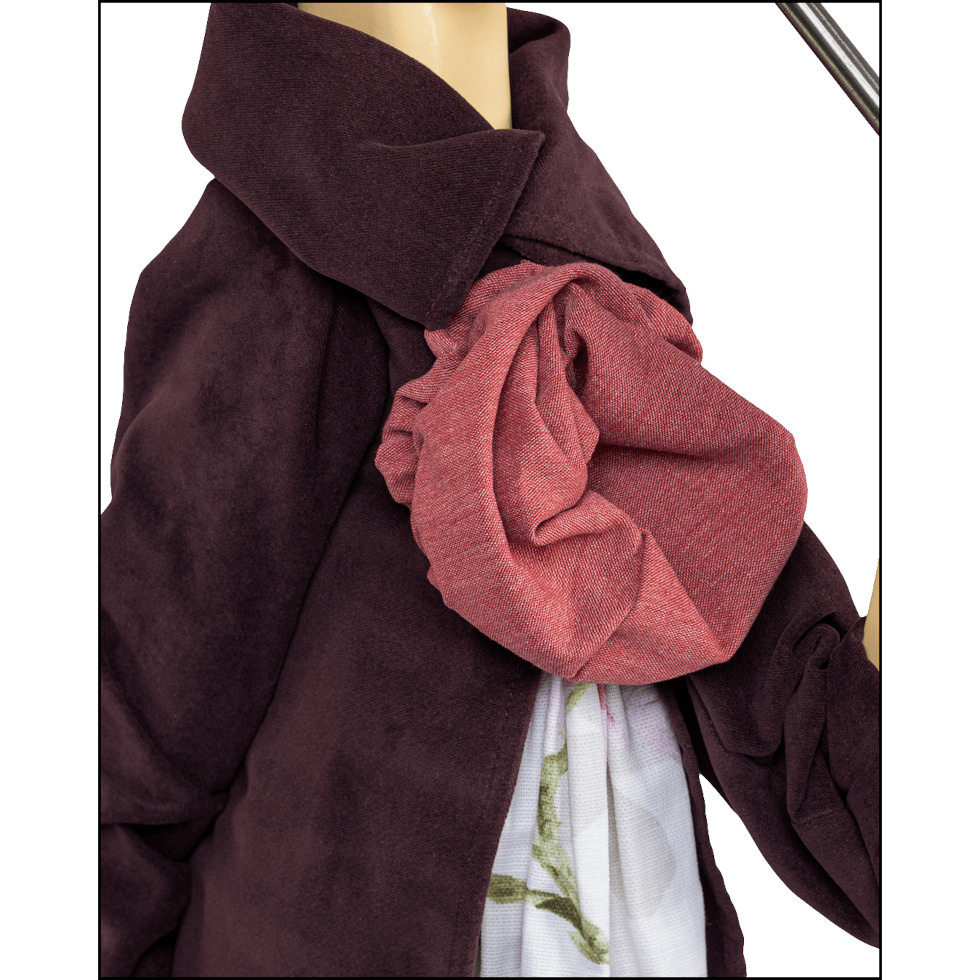 Dit fleurige model heeft een geplooide bloemparaplu die dient als lampenkap en is gemaakt van nikkelkleurig metaal met gedeeltelijk opgestijfd kaasdoek. De basis van de vrouw is gemaakt van beschilderd hout. Stimona is gekleed in verschillende rode aardetinten. Zo draagt ze een ruime witte jurk gedecoreerd met een prachtige bloemenprint in roze en olijfgroen en heeft ze een bruinrode jas aan die uitloopt in lange punten. Op de jas heeft ze een grote corsage in de vorm van een bloem gekleurd in oudroze. De bloemparaplu of lampenkap is samen met haar hoedje uitgevoerd in lichtroze, haar laarzen dan weer passend in donkerroze.