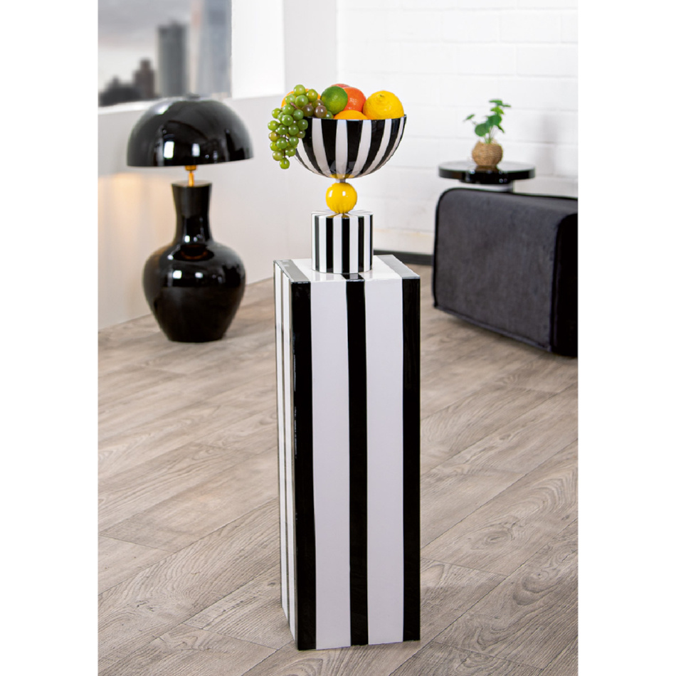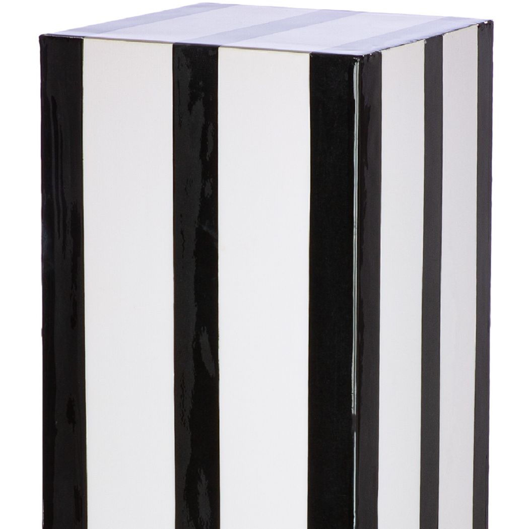 Deze elegante zuil met een glanzend zwart witte look is een prachtige eye catcher voor in je interieur. Door zijn strepen van boven naar beneden een bijzonder exemplaar om naar te kijken. De pilaar is een mooie plek voor een grote plant of beeld en geeft dit nog meer aandacht!