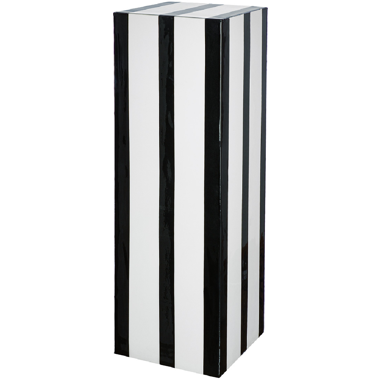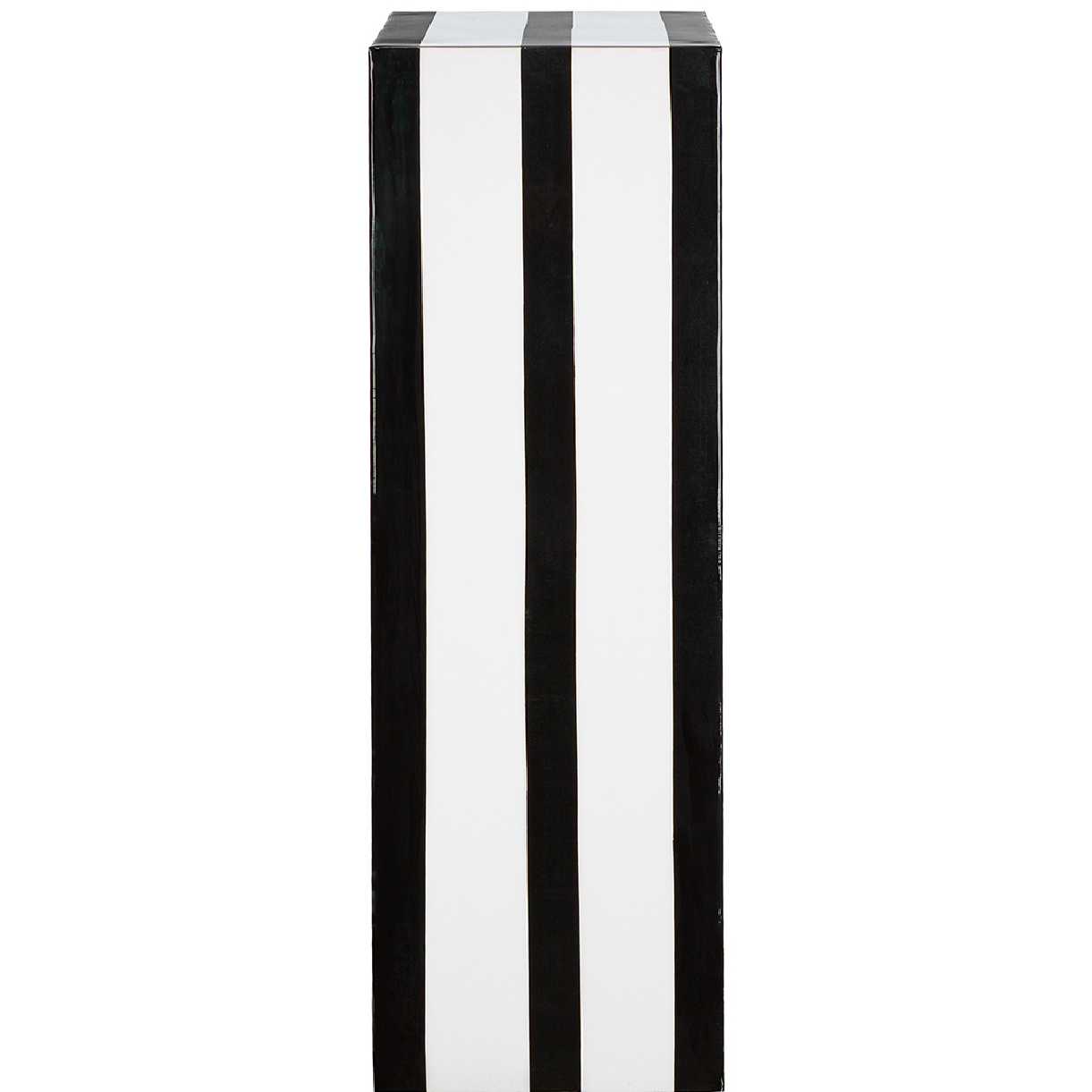 Deze elegante zuil met een glanzend zwart witte look is een prachtige eye catcher voor in je interieur. Door zijn strepen van boven naar beneden een bijzonder exemplaar om naar te kijken. De pilaar is een mooie plek voor een grote plant of beeld en geeft dit nog meer aandacht!